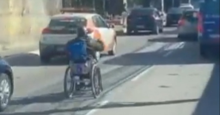 Supera le auto, in carrozzella. È "caccia" al disabile