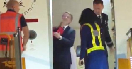 Brigitte Macron resta per un momento nascosta alla vista, poi segue Emmanuel che scende la scaletta. Ma lo fa con il volto scuro e rifiutando il braccio che le viene offerto dal marito. Il piccolo incidente sta avendo grande rilievo sui social network.