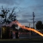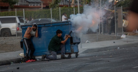 Gli agenti in assetto antisommossa, con elmetti e scudi, si sono radunati nella zona nel pomeriggio e si sono scontrati con i dimostranti che da due giorni stanno protestando contro i raid dell'Immigration and Customs Enforcement (ICE) in cui sono state effettuate decine di arresti nella zona di Paramount, un quartiere a maggioranza latina. Gli agenti hanno utilizzato ancora una volta proiettili di gomma e gas lacrimogeni per disperdere i manifestanti.