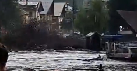BARDONECCHIA - Il torrente Frejus è esondato in centro a Bardonecchia (Torino), dov'è impossibile transitare, a quasi due anni di distanza dell'alluvione di agosto 2023.