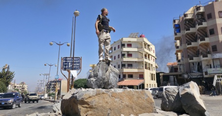 Secondo le fonti locali, l'aviazione israeliana aveva colpito un carro armato delle forze governative, che stando ad alcune fonti faceva parte di un convoglio che si apprestava a entrare in città. Il raid israeliano è tuttavia apparso solo dimostrativo.