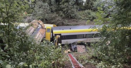 Una frana sui binari, provocata da un violento temporale, sembra al momento la causa più probabile. Le immagini circolate sui media mostrano i soccorritori chini sulle lamiere, che si sono accartocciate, mentre provano a estrarre i passeggeri, si possono udire delle urla e delle richieste di aiuto.