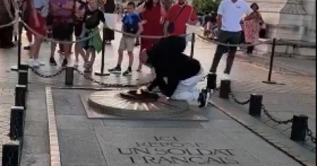 Nelle immagini, si vede un uomo che, proprio sotto gli occhi dei turisti intenti a contemplare la Tomba del Milite Ignoto sotto l'Arco di Trionfo, noncurante delle transenne e del valore del monumento eretto in onore dei soldati caduti per la Francia durante la Prima Guerra Mondiale, si accende la sua sigaretta per poi andarsene con la stessa naturalezza.