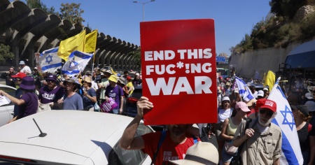 Decine di migliaia di persone stanno manifestando in Israele per la fine della guerra a Gaza.