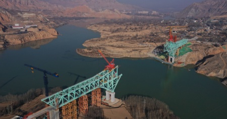 Il ponte sulla ferrovia Sichuan-Qinghai è quello ad arco continuo a doppio binario con travatura reticolare in acciaio più grande al mondo e anche il primo del suo genere ad attraversare il fiume Giallo, nonché il secondo più lungo della Repubblica popolare.