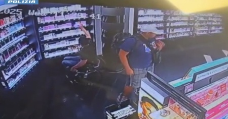 Nel video si vede l'uomo in carrozzella che prende i profumi, allungandosi verso i prodotti in esposizione. Successivamente li mette velocemente nello zaino del compare.