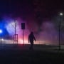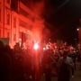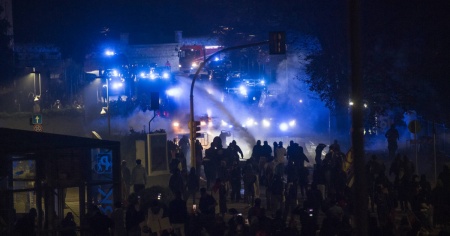 Gli agenti in servizio di ordine pubblico, schierati a presidio dell'area, li hanno bloccati; contro le forze dell'ordine sono stati lanciati sassi e materiale pirotecnico. La polizia ha risposto con cariche di alleggerimento usando idranti e lacrimogeni per disperdere il gruppo.