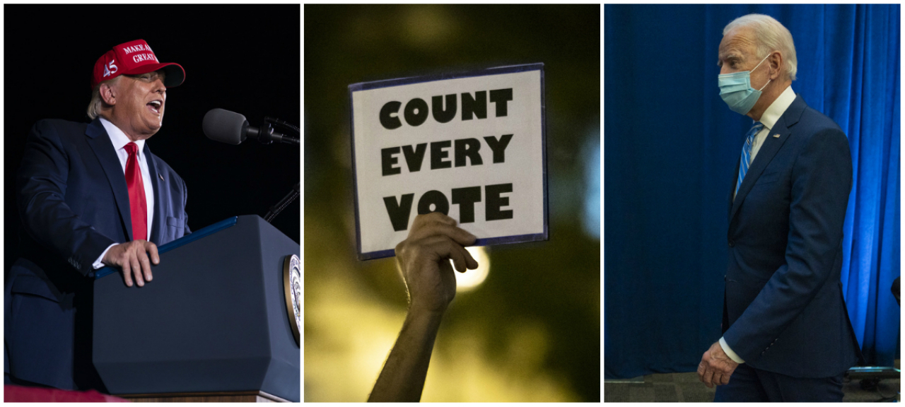 Il candidato democratico alla presidenza Joe Biden guida al momento la corsa con 253 grandi elettori, mentre Trump ne ha 213. Il tutto verrà deciso con i risultati di Arizona, Georgia, Nevada, North Carolina e Pennsylvania.