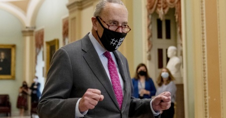 Il capo della maggioranza democratica al Senato, Chuck Schumer esulta dopo il voto.