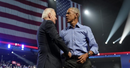 «Andate a votare pensando al futuro della democrazia», è stato l'appello del presidente. «Il potere dell'America è nelle vostre mani». Anche Obama ha insistito sulla posta in gioco l'8 novembre nell'intervento che ha chiuso l'evento elettorale. «I diritti fondamentali, la verità ed un'economia giusta sono in ballo. La democrazia stessa è in gioco in queste elezioni», ha sottolineato l'ex presidente. «Le elezioni di medio termine non sono uno scherzo, la nostra democrazia è un lavoro di squadra, un presidente non può agire da solo. Voi avete un presidente incredibile alla Casa Bianca e può continuare a fare cose grandiose se votate. Può fare anche di più, ma dipende da voi», ha aggiunto esortando tutti ad andare a votare per chi «è disposto a lottare per voi». «Chi proteggerà le vostre famiglie?», ha chiesto Obama ad un folla in delirio. «I repubblicani che vogliono riempire le strade di armi o i leader democratici?».