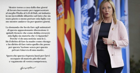 Sono una madre - Ma nessun avvocato può essere migliore della Meloni stessa, che, tra un bilaterale e un altro (su tutti quelli con Xi Jinping e Biden) ha deciso di intervenire direttamente sulla questione, con un messaggio dai propri profili social. La sua è una vera e propria rivendicazione: voler esercitare il proprio ruolo di madre in totale autonomia.
