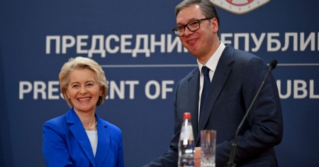 Parlando in una conferenza stampa congiunta, von der Leyen ha osservato che la Serbia è uno dei paesi candidati più avanti sulla strada verso l'adesione all'Ue. «Noi vogliamo che la Serbia entri a far parte dell'Unione europea. L'Ue vuole contare sulla Serbia quale partner affidabile», ha detto la presidente della Commissione.