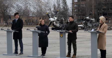 KIEV / ROMA - «Noi leader del G7 ci siamo incontrati oggi con il presidente ucraino Volodymyr Zelensky per riaffermare il nostro incrollabile sostegno all'Ucraina e rendere omaggio ancora una volta al coraggio e alla resilienza del popolo ucraino che ha combattuto instancabilmente per la libertà e il futuro democratico dell'Ucraina».