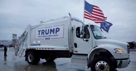 «Come vi sembra il mio camion della spazzatura? Questo camion è in onore di Kamala e Joe Biden», ha detto il tycoon, a cui non è stato chiesto dei suoi ripetuti riferimenti all'America come a un «bidone della spazzatura» per il mondo.