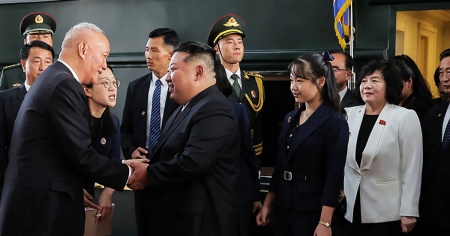 Le foto diffuse dai media statali nordcoreani mostrano Kim Ju-ae, che si ritiene sia poco più che adolescente, mentre scende dal treno blindato del padre nella capitale cinese, dove è stata accolta da funzionari cinesi all'inizio del suo debutto sulla scena internazionale.