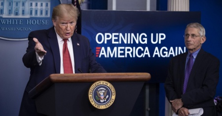 «La nostra squadra di esperti è d'accordo sul fatto che possiamo iniziare quello che è il nuovo fronte della nostra guerra che chiameremo "riaprire l'America". Per tutelare la salute dei cittadini dobbiamo preservare la salute e il funzionamento della nostra economia», ha detto il presidente ribadendo come il picco sia stato superato. «L'America vuole riaprire. Dobbiamo avere un'economia che gira, e la vogliamo avere molto, molto rapidamente. È ora», aggiunge Trump.