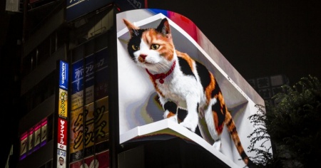 Non si tratta del primo cartellone pubblicitario di questo tipo: lo scorso maggio a Seul era comparsa un'onda gigante. Ma il Giappone non poteva non rendere omaggio a uno degli animali più adorati dai suoi abitanti, e non solo. E a giudicare dal numero di persone che si ferma ad ammirare il gatto 3D, lo scopo è stato raggiunto.