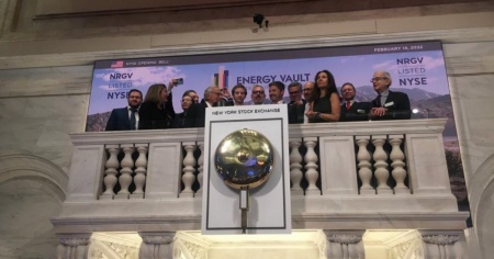 Un mondo di energia pulita - Energy Vault, nata come start-up ad Arbedo Castione e oggi ormai diventata una holding con un piede in California e l’altro ancora ben saldo nel nostro cantone, entra ufficialmente con il titolo siglato "NRGV" nel listino del NYSE, il “New York Stock Exchange”. È il lunedì dell’IPO (Initial Pubblic Offering), l’offerta pubblica iniziale dei titoli azionari. Da ieri lo anticipa anche la facciata neoclassica del palazzo, all’incrocio tra Wall Street e Broad Street, che è ricoperta da un grosso telo blu con il logo dell’azienda e la scritta “Enabling a Renewable World”. Alle 15.30 spaccate il Ceo di Energy Vault, Robert Piconi, ha avuto l'onore di far suonare la campanella. Nel team che ha presenziato al battesimo anche l’ingegnere ticinese Andrea Pedretti, tra i principali artefici dell'impresa.