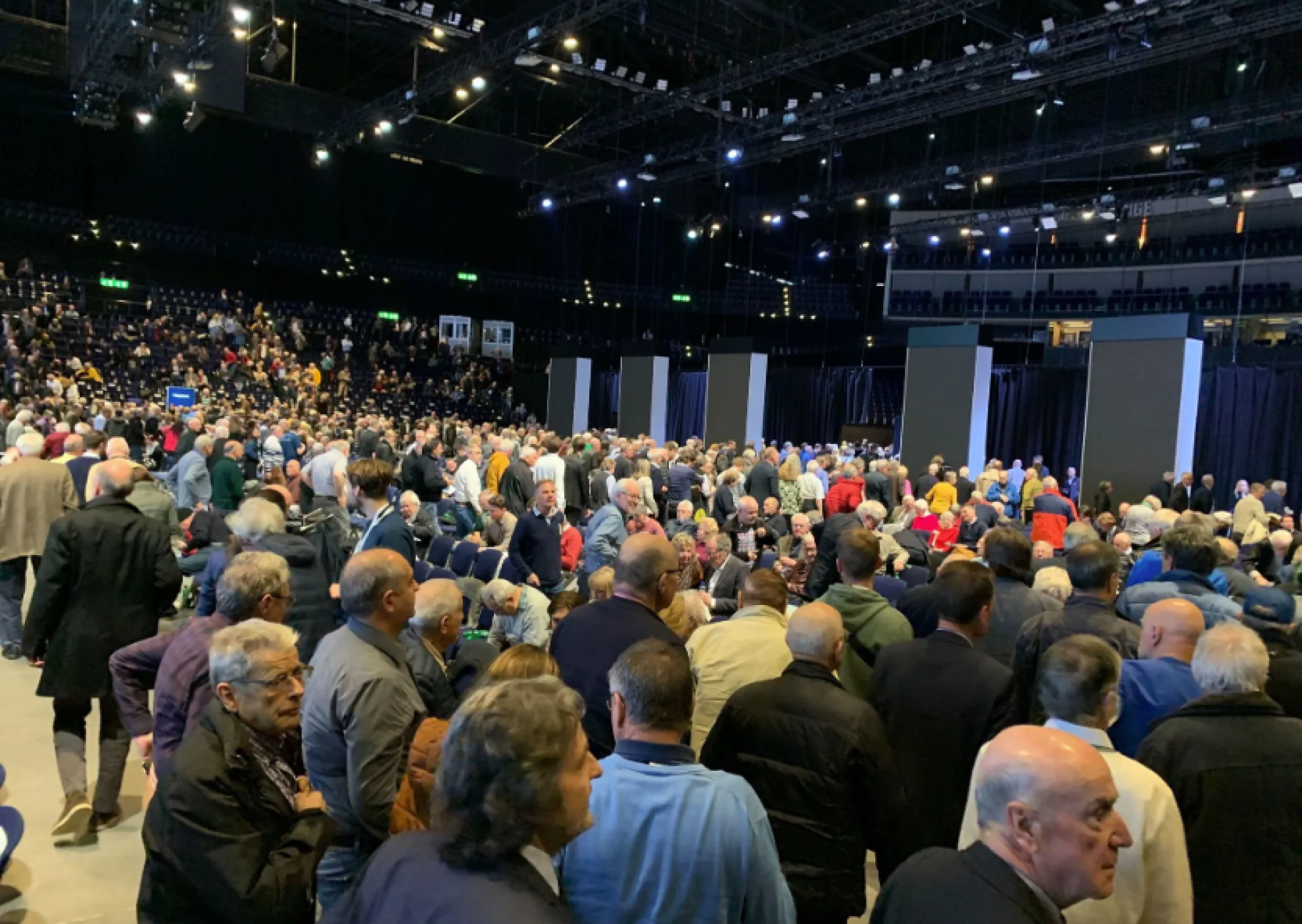 Porte aperte dalle nove. Gli azionisti irrompono nell'Hallenstadion. L'assemblea generale inizia alle 10:30.
