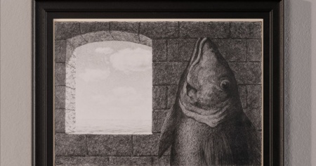 Quest’ultimo rappresenta un elemento tipico dell’artista che, con la sua arte, ha valorizzato oggetti usuali, facendoli fuoriuscire dal loro contesto naturale, per mostrare allo spettatore un contenuto onirico, apparentemente indecifrabile. La misteriosa presenza ittiforme si pone in un muto dialogo con l’apertura verso un orizzonte infinito fatto di mare, aria e nuvole lasciando l’osservatore in una posizione interrogativa verso l’enigma celato nell’opera.