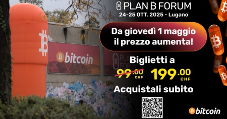 Tra sei mesi esatti si alzerà il sipario sulla quarta edizione della conferenza di riferimento in Europa in ambito Bitcoin e tecnologie P2P. Il 24 e 25 ottobre prossimi, a Lugano - dove è nata la rassegna che sin dal suo “battesimo”, nel 2022, ha attirato ogni anno migliaia di persone da tutto il mondo - tornerà infatti il Plan ₿ Forum. Se volete immergervi nell’atmosfera unica dell’evento, approfittando di un prezzo imperdibile, restano però solo pochi giorni per cogliere l’occasione e acquistare i biglietti “Peer”, che danno accesso a tutte le esperienze principali dell’evento, per soli 99 CHF.