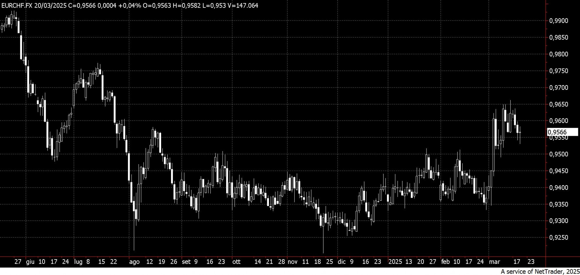L’esigenza di contenere l’apprezzamento del Franco svizzero sembra essere passata in secondo piano: nel giorno del taglio dei tassi in esame, il cambio tra Euro e Franco (Eur/Chf) è sceso fino a 0,953, tornando poi a oscillare oltre quota 0,950, valore quest'ultimo prossimo ai livelli registrati a metà dell'agosto dello scorso anno. Tuttavia, avvertono alcuni esperti, la tendenza potrebbe mutare a causa dell’incremento del debito pubblico nell’UE, in particolare in Germania, innescando così un aumento della volatilità dell'Eur/Chf.