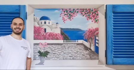 Alfio è un talento dei giorni nostri, che non limita la sua tela ad un banale dipinto ma sceglie come base per i suoi capolavori le mura domestiche, le cucine, i bagni, gli armadi a muro; qualsiasi superficie può essere abbellita dalle sue preziose capacità.