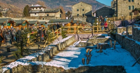 Durante il periodo delle feste (e fino al giorno della Befana) i mercatini ad Aosta trasformano il cuore della città in un incantevole villaggio alpino. La visita delle bancarelle, che si snodano in mezzo alla città archeologica romana, è l’occasione per scoprire in un’atmosfera davvero unica le specialità artigianali ed enogastronomiche del territorio.