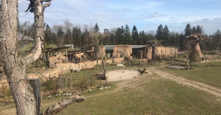Dalla voliera, un burrone conduce alla casa delle giraffe, che ospita le giraffe reticolate e i rinoceronti bianchi. Normalmente questa casa è vuota perché gli animali pascolano all'aria aperta. All'uscita, si passa per degli spioncini attraverso i quali si possono osservare i ratti talpa nudi - attualmente insieme alla loro prole. Sono, dal mio personale punto di vista, piuttosto in fondo alla lista degli animali più belli del mondo, possiedono comunque un certo fascino. Tra l’altro: corrono all'indietro con la stessa velocità con cui corrono in avanti. Tornando verso la piazza del villaggio si passa davanti ai simpatici suricati sempre in piena attività.