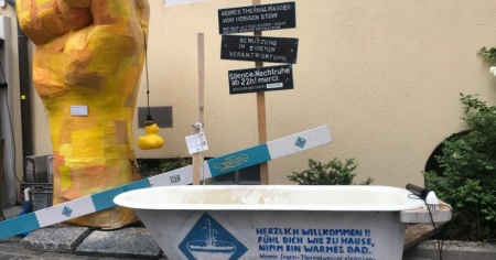 Il mio primo giorno a Baden termina qui e devo ammettere che questa cittadina è davvero molto simpatica: per esempio, vista la chiusura dei bagni termali pubblici, le autorità hanno permesso a un’associazione, con il nome “Bagni popolari”, di piazzare una vasca da bagno, in pieno centro, dove testare, muniti di costume da bagno, i 47 gradi della sua acqua minerale. Baden va davvero scoperta e rivalutata a livello turistico. Il mio prossimo giorno sarà dedicato al WaldBaden: una full immersion nell’aria del bosco.