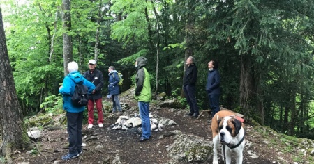 Nella visita guidata «WaldBaden», i visitatori vengono accompagnati verso un’insolita esperienza sensoriale, nel vero senso della parola, a contatto con il bosco di Baden. Durante la passeggiata nel bosco, i partecipanti possono abbandonarsi con tutti i sensi e percepiscono l’effetto benefico, rivitalizzante e calmante del bosco sul proprio benessere. Nel nostro caso abbiamo incontrato la guida Fredy Hauser alla fermata Baldegg da dove ci siamo incamminati per il tour. Un programma davvero interessante e variegato, completato da aneddoti e letture. Ci siamo, per esempio, fermati ai piedi di un ciavardello, uno di quegli alberi che è raro vedere nei giardini eppure ha una ricca fioritura profumata, frutti commestibili e decorativi, foglie insolite e interessanti, abbiamo meditato davanti ad un faggio di oltre 150 anni, osservato un tiglio con le foglie a forma di cuore. Non poteva naturalmente mancare il tasso, una pianta dell'ordine delle conifere, molto usato come siepe ornamentale. È conosciuto anche con il nome di “albero della morte” a causa del suo potente veleno. La guida ha introdotto il gruppo, facendosi aiutare da foto e leggende, anche su aspetti storici e naturalistici, mostrando e spiegando le orme lasciate dagli animali.