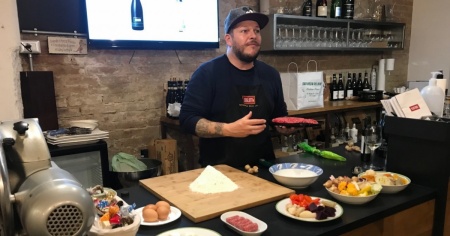 Quasi dimenticavo le pietanze preparate da Diego Bongiovanni: una pasta fresca con la tipica carne di fassona. Ma, per aprire le danze, la bagna cauda. Si tratta di una ricetta tipica piemontese e per gli abitanti della regione è sacra! Uno di quei classici piatti conviviali che sono perfetti per riunire attorno a un tavolo amici e famigliari, ed essendo molto ricca e sostanziosa si può gustare anche come piatto unico. Ma qual è la ricetta? Beh, è una salsa (infatti il significato di bagna cauda è salsa calda) a base di tre ingredienti soltanto: acciughe, aglio e olio. Viene preparata in grandi quantità e poi servita nei fujot, dei piccoli recipienti monoporzione in terracotta con sotto una piccola fiammella che mantiene sempre caldo l’intingolo.