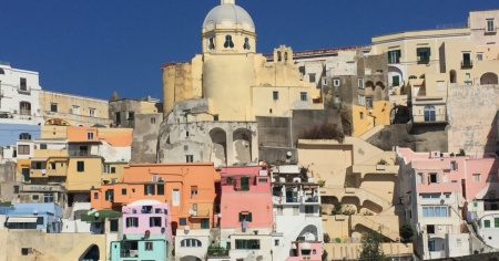 Nel Golfo di Napoli, assieme alle altre perle partenopee d'Ischia e Capri, l’Isola di Procida, con una notevole densità umana, nonostante la superficie sia di appena 4 chilometri quadrati.