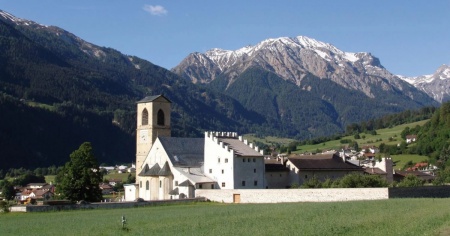 MÜSTAIR - Secondo la leggenda, il monastero di Müstair fu fondato da Carlo Magno dopo essere sfuggito a una terribile tempesta di neve sul Passo dell'Umbrail al ritorno dalla campagna lombarda (773-774). Sebbene non esistano prove contemporanee di questa fondazione, un collegamento con il famoso sovrano franco non è improbabile. Come recenti ricerche hanno potuto dimostrare, la costruzione della Cappella della Santa Croce a due piani iniziò effettivamente nel 775. Già nella sua fase di fondazione, il Kloser era un complesso monumentale, il cui centro era la chiesa dedicata a Giovanni Battista. È decorata con ricchissimi dipinti murali carolingi e ospita una famosa statua di Carlo dell'Alto Medioevo.