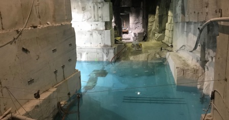 Dopo aver percorso diversi chilometri nei vari cunicoli, ci fermiamo a una gigantesca piscina. È così surrealmente turchese, come se qualcuno l'avesse elaborata con un filtro fotografico Disney. Questo lago simile a un mare del Sud, profondo diversi metri, quando le pompe non sono in servizio. Per attraversare questo specchio d’acqua si prende la barca a remi e questo all’interno della montagna. Una gita davvero speciale. Quando le pompe dell'acqua sono spente e l'estrazione è ferma, la cava, situata a 1’567 metri sul livello del mare, si riempie di ben dieci milioni di litri d'acqua in circa 48 ore. Acqua che verrà in futuro sfruttata per la produzione di energia.