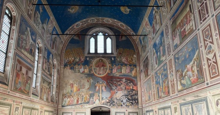 Proseguendo il cammino, giungo alla Cappella degli Scrovegni, uno dei capolavori assoluti della pittura medievale. La cappella, decorata da Giotto, è celebre per i suoi affreschi che raccontano la vita di Cristo, ma uno degli elementi più straordinari è senza dubbio il ciclo del Giudizio Universale. Questo straordinario affresco, che ricopre la parete centrale della cappella, rappresenta l’epitome dell’arte giottesca, con la sua capacità di esprimere la drammaticità e la potenza del tema religioso. Giotto, con la sua maestria, è riuscito a rendere la scena del Giudizio una delle più intense rappresentazioni della spiritualità medievale.