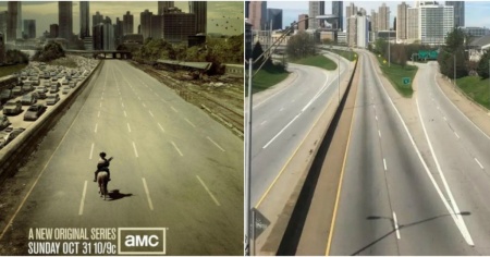 Lo svincolo deserto della serie, con Rick a cavallo, è stato di recente rifotografato e postato sui social (diventando subito virale) ed è... ancora più spettrale che quello immaginato dagli autori della serie.