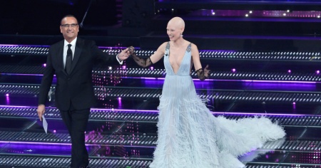 L'Ariston si illumina all'ingresso di Bianca Balti. «Non sono venuta a fare la malata, ma a celebrare la vita» aveva spiegato incontrando la stampa. Il sorriso è aperto, la testa calva post chemio, l'abito lungo e vaporoso in piume celesti. «Grazie Carlo per avermi fatto uscire prima di Malgioglio, perché saprete che le piume le ha copiate da me», ironizza. E quando il conduttore le dice «sei un esempio per le donne, forte», replica: «Noi donne siamo sempre un grande esempio per gli uomini».