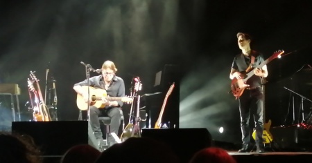 Il Palexpo in delirio per i pezzi "storici" - Sulla "prima linea" del palco arriva però anche il tempo di "Andrea", con la band (gli straordinari Osvaldo di Dio alle chitarre, Davide Pezzin al basso, Luciano Luisi alle tastiere e Ivano Zanotti alla batteria) tutta allineata a mandare in delirio il pubblico locarnese con pezzi della tradizione di casa De André: dall'Angiolina di "Volta la carta" a "Il testamento di Tito", per non parlare della rivisitazione ad alto tasso rock di "Quello che non ho" (con il pubblico tutto in piedi) e della sempre struggente "Fiume Sand Creek".