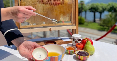 Filiera corta, prodotti di qualità, trasporti ed emissioni di CO2 ridotti: i fornitori ticinesi dell’albergo sono il 65% del totale e il 57% di questi si trova nel raggio dei 10 Km. Così come la Fattoria di Origlio, che a soli 8 Km dall’albergo produce il miele che la clientela internazionale può degustare ogni mattina.