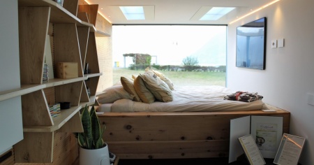 Uno spazio dal design minimale, che ricopre una superficie di poco più di 45 m2 e che si presta perfettamente per due persone. L’open space è composto da una zona notte e un soggiorno. A completare il tutto, ovviamente, troviamo anche un servizio igienico con doccia/sauna e un locale tecnico.