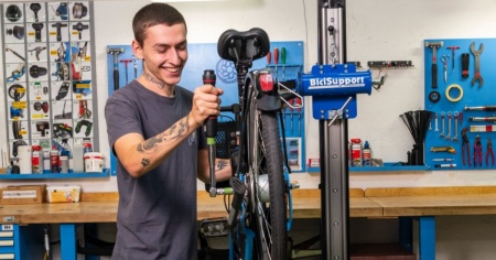 Un aiuto targato Coop - Il lavoro del meccanico non è fisicamente facile. Tra le altre cose, la schiena e le braccia sono molto sollecitate. Il Comitato del consiglio regionale ha stanziato un finanziamento con cui la Fondazione ha acquistato un cavalletto a sollevamento assistito, che, a differenza di quelli standard già presenti nell’officina, evita pesanti sforzi. «Alzare una bicicletta di 30 chili, per chi non ha problemi fisici come me non è complicato, ma per chi ha problemi può essere davvero faticoso, quasi impossibile, così questo strumento aiuta perché non ti sforzi a tirare su la bicicletta, la inserisci al gancio e automaticamente viene alzata», conclude Aris.