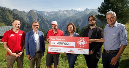 Buone prospettive per le famiglie - Nella Valle di Blenio urge il risanamento dell’alpe Predasca. L’attrezzatura tecnica e lo spazio disponibile nel caseificio, che ha circa 60 anni, non soddisfano più gli standard ambientali e produttivi di oggi. A tale scopo, i responsabili della cooperativa alpestre hanno potuto prendere in consegna in una cerimonia solenne un assegno per un importo di 450 000 franchi.