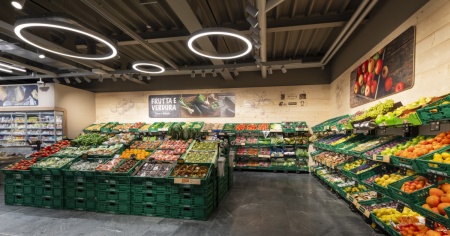 A contribuire all'aspetto moderno della struttura saranno non solo le ampie vetrate, ma anche la presenza di arredi in legno, pareti in mattoni rossi nel reparto panetteria, illuminazione LED, e un ambiente più luminoso e accogliente.