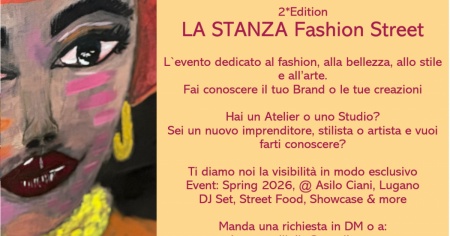 LUGANO - Dopo il successo della prima edizione, tornerà nel 2026 LA STANZA FASHION STREET. Sono aperte le iscrizioni per stilisti, artisti, imprenditori e per chiunque desideri dare visibilità al proprio brand o alle proprie creazioni.