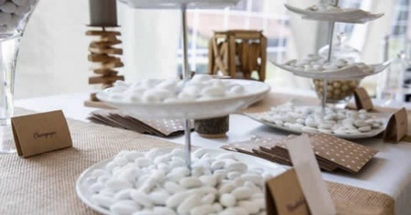 Questi materiali possono essere utilizzati anche nelle decorazioni e nelle composizioni floreali per la festa dell'anniversario e solitamente si abbinano ai colori scelti per i confetti da offrire a parenti e amici.