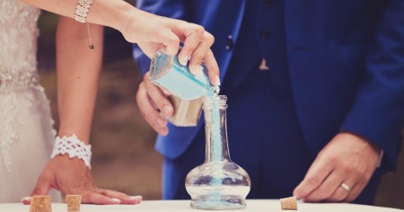 Altrettanto scenografico, ma dal sapore decisamente più estivo è il rito della sabbia, che consiste nel mischiare delle sabbie dai colori differenti. Per farlo si possono scegliere vari tipi di contenitori (vasi, bottiglie, clessidre…).