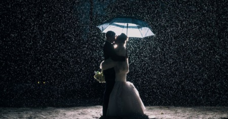 Coordinatevi con il fotografo per sfruttare al meglio la pioggia. Gli scatti sotto l’ombrello, con riflessi scintillanti e gocce di pioggia, possono creare immagini uniche e romantiche.