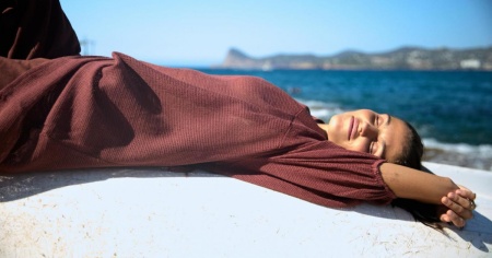 La collezione si muove con leggerezza: abiti fluidi, set coordinati t-shirt-camicia e un mini dress in denim, perfetti per seguire il ritmo dell’estate. I colori? Un inno alla natura: marrone sabbia, verde oliva e bianco puro per un’eleganza disinvolta e senza sforzo.
