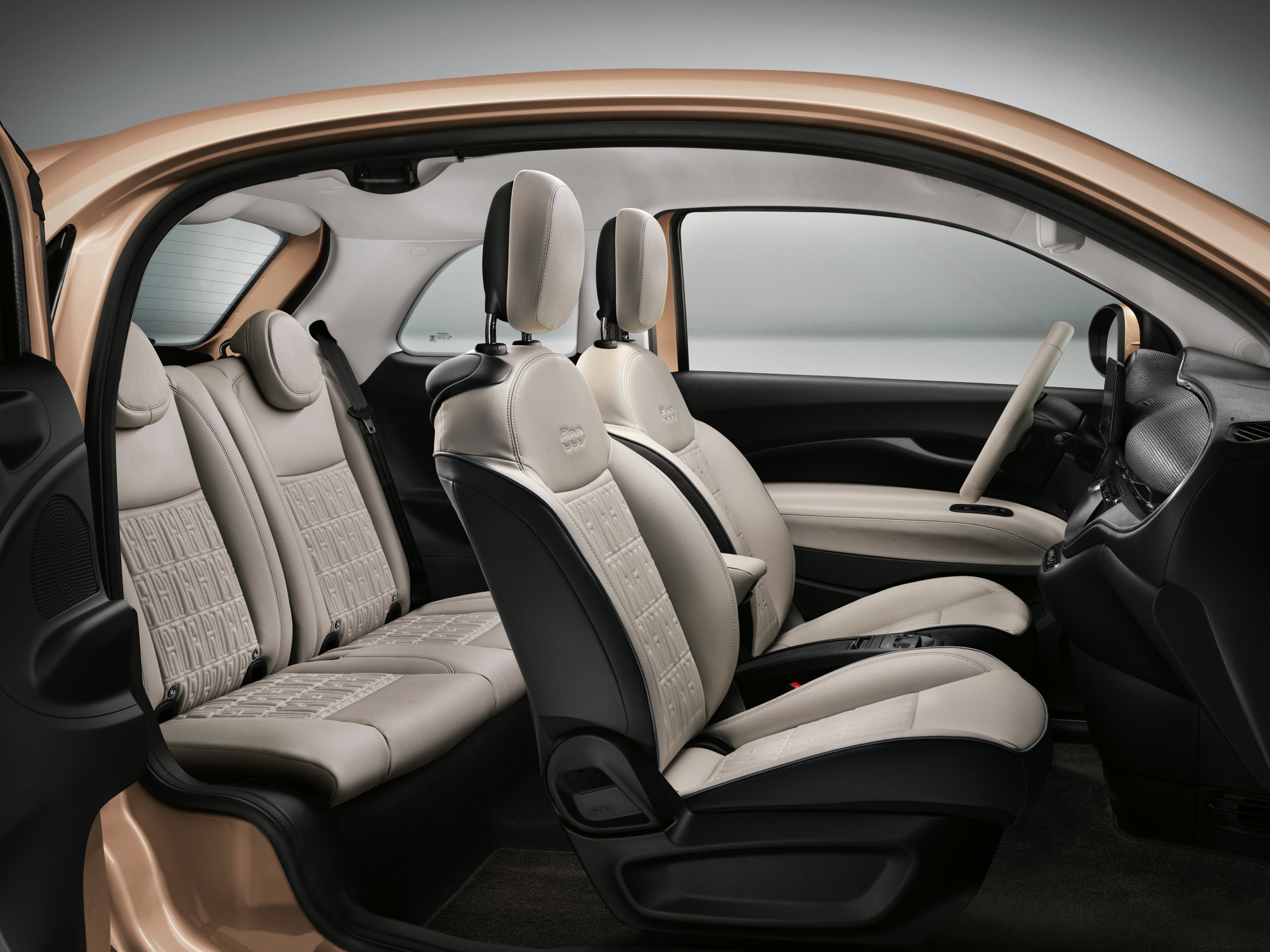 Gli interni non sono da meno. I sedili in eco-pelle hanno il monogramma Fiat e risultano molto comodi, così come il volante e l’interno delle portiere, anch'esso in eco-pelle. La leva del cambio è invece stata sostituita da comodi pulsanti al centro della plancia, che danno un tocco futuristico rispetto alle versioni precedenti. Sempre parlando della plancia, in alto e al centro è stato inoltre ricavato un vano oggetti che permette di caricare il proprio cellulare. In questo, guardando più nel dettaglio, si riconosce lo skyline di Torino.
